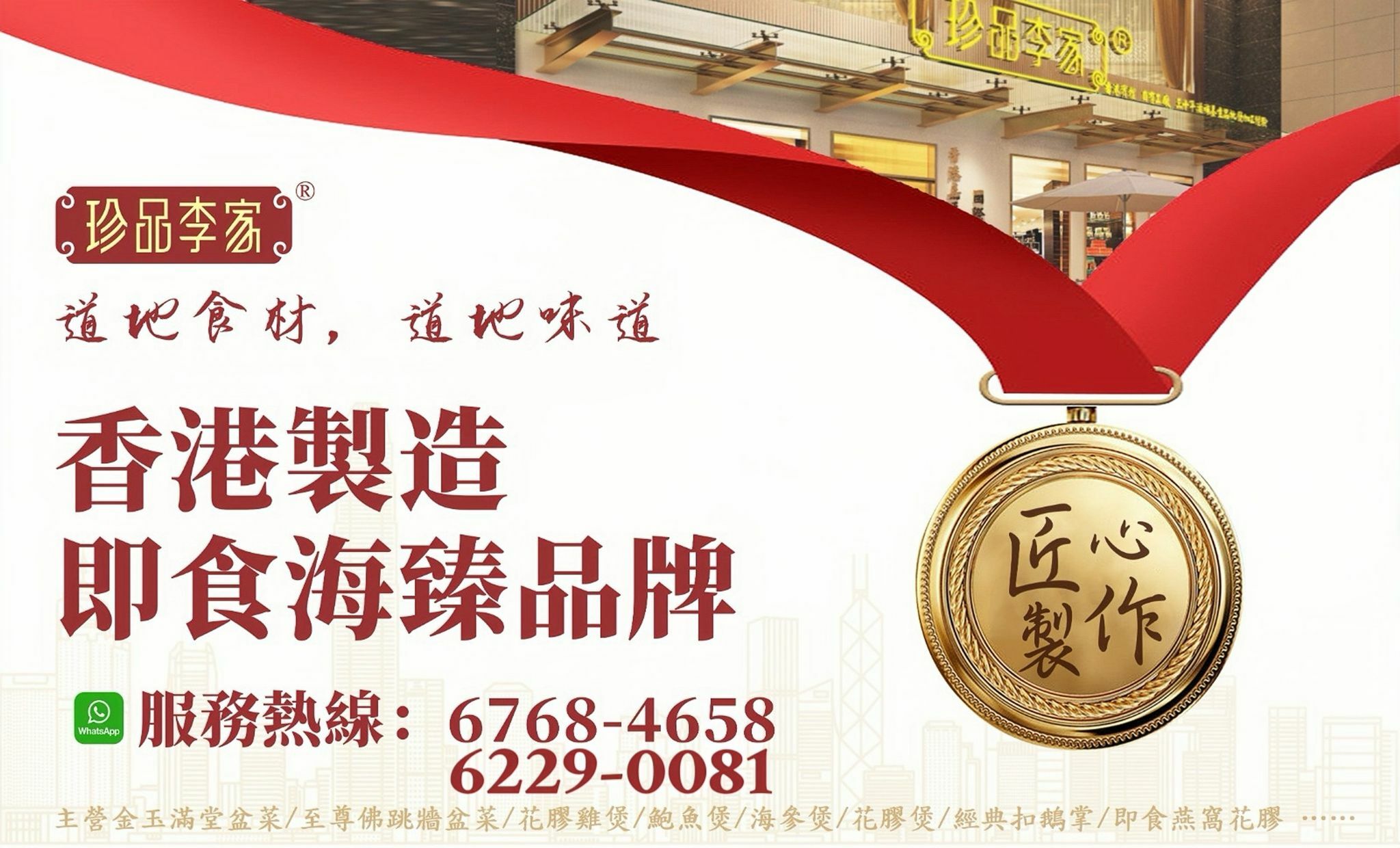 珍品李家【即食海臻】系列,嚴選上乘品質的海味珍品,再由香港老師傅為顧客預先匠心製作,並科學低溫處理保存,方便顧客將星級美味帶回家與親友共享。